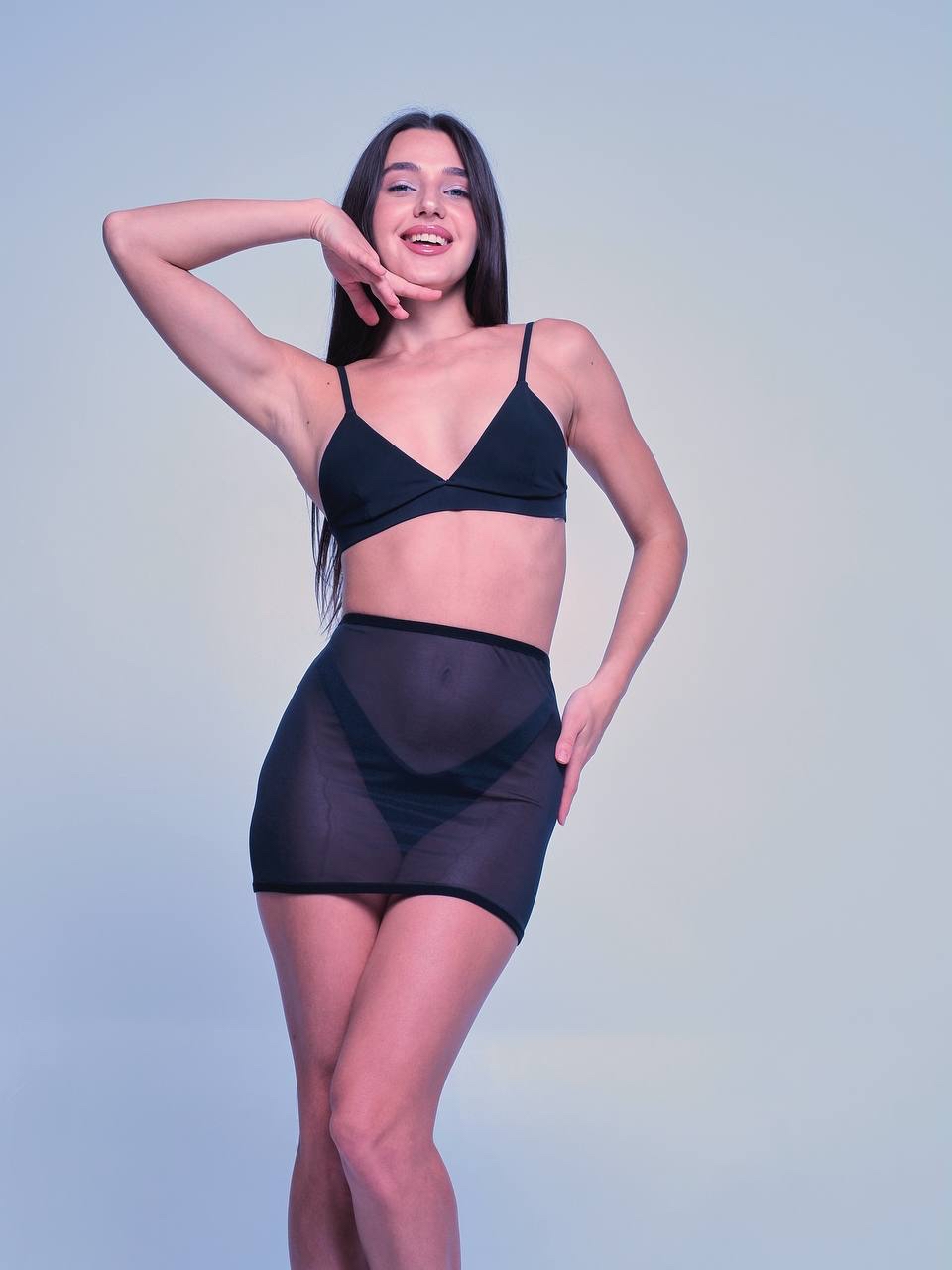Комплект Топ лиф, трусики стринги и юбка сетка